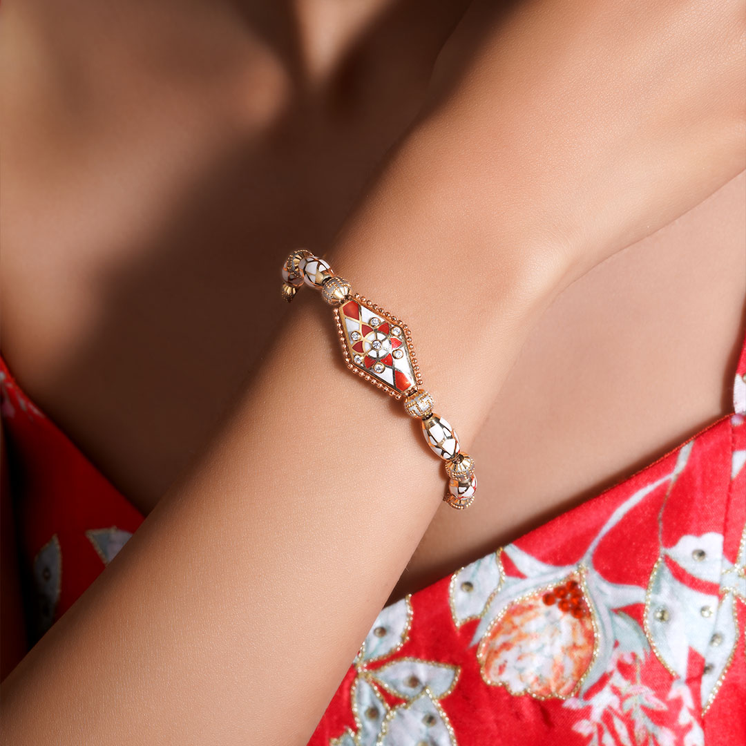 Our bridal bracelets feature detailed craftsmanship and rich designs that beautifully complement bridal jewellery sets.